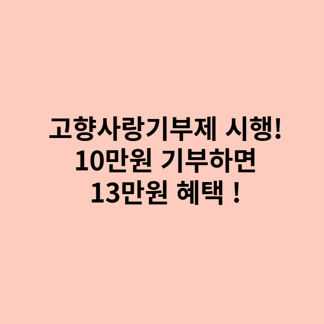 '고향사랑기부제' 들어보셨나요? 2023년 1월 1일부터 시행이 된다고 하는데요. 10만 원을 기부하면 세액공제 10만 원, 답례품 3만 원을 더해 총 13만 원의 혜택을 받을 수 있다고 합니다. 그럼 자세한 내용 살펴볼까요?