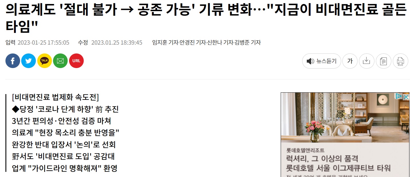 - 비대면 진료 도입에 찬성하는 국민 여론이 높았으나 의료계의 완강한 반대로 쉽사리 도입되지 못했습니다. 하지만 최근 의료계가 '논의는 진행할 수 있다'는 입장으로 선회하며 비대면 진료 관련주가 상승하였습니다.