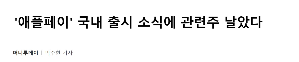 - 애플의 간편결제 시스템인 '애플페이'가 국내에 출시된다는 소식에 관련주가 강세를 보였습니다.